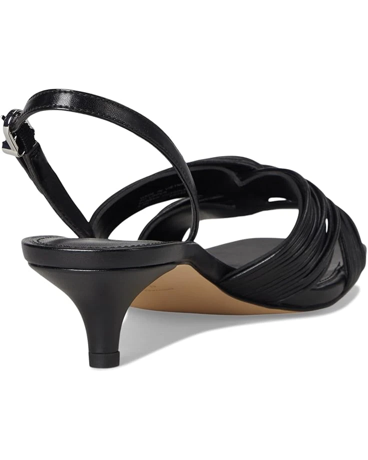 - The MICHAEL Michael Kors® Alessia Kitten Sandal boasts beautiful bombe pleated twist design that adds a touch of luxury. Featuring a sophisticated square toe and a buckle adjustable slingback strap, this sandal combines modern chic with timeless appeal.
