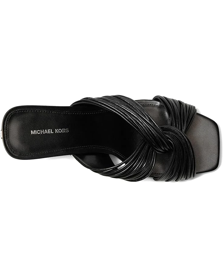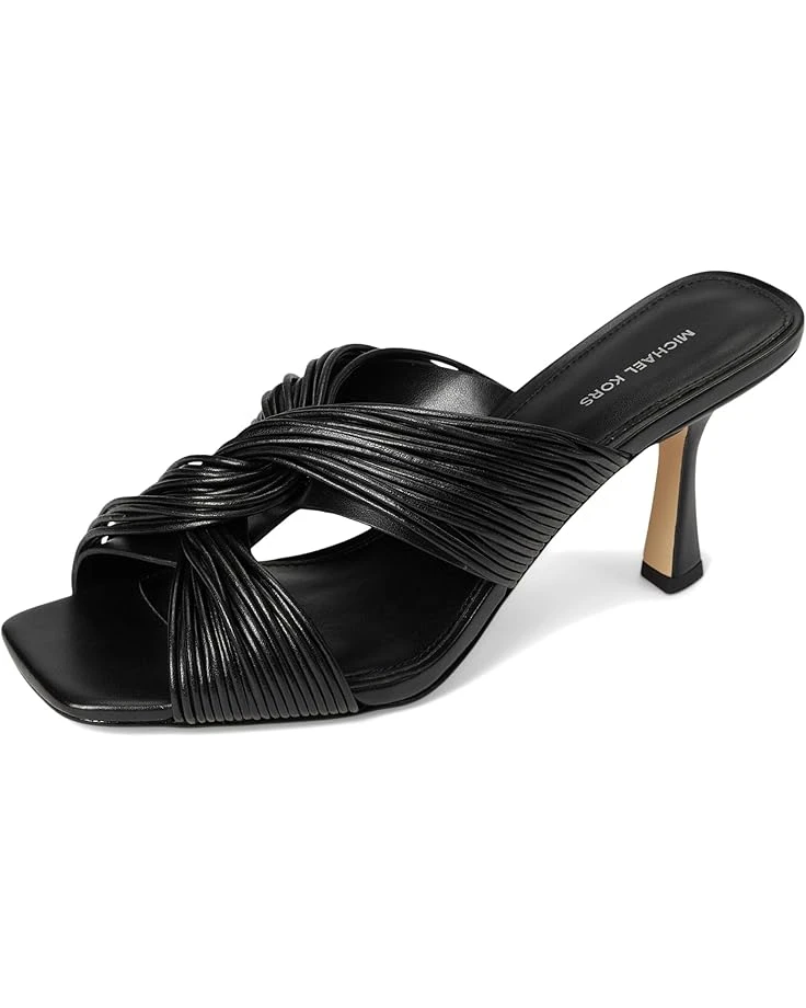 - Give a classic touch to your modern statement look wearing the MICHAEL Michael Kors® Alessia Mule Sandal. Crafted from PU upper, polyurethane lining, and faux leather insole, this pair of sandals features open square toe, bold, textural, twisted straps design, tiletto heel, slip-on style, and brand detailing on the footbed.