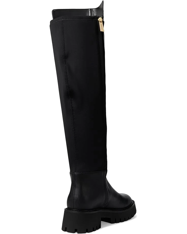 - Modern toe and lug sole construction is featured on this MICHAEL Michael Kors® Asher boots with full zippered side closure and 50/50 stretch designed to elevate your cold-weather wardrobe with its water-resistant leather upper as it is equal parts practical as it is fashionable. The over-the-knee boots feature polyester lining and synthetic insole.