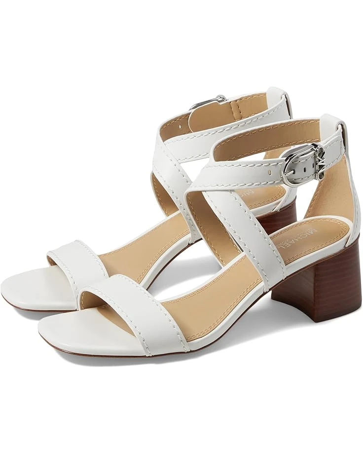 - Make outdoor gatherings a reason to flaunt your style perfection wearing the MICHAEL Michael Kors® Ashton Mid Sandals. The block-heeled footwear features leather upper construction with buckled ankle strap closure and an open square toe silhouette.