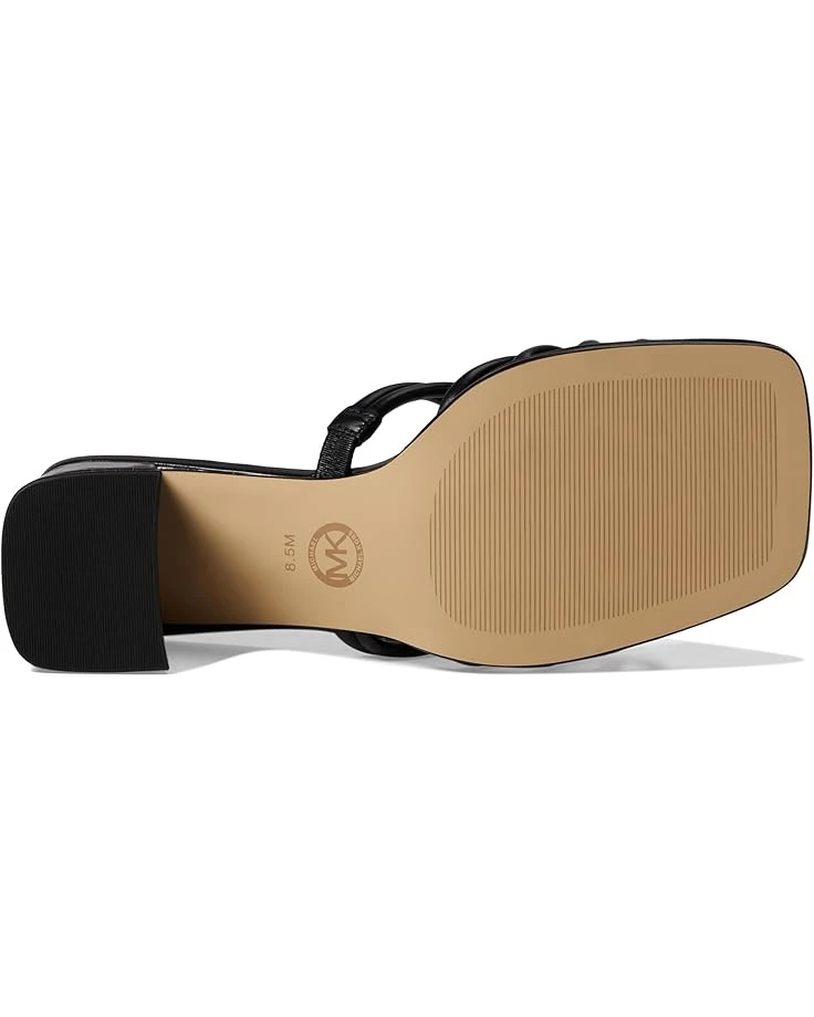- The MICHAEL Michael Kors® Astra Mule is a charming sandal on blocked heel with simple yet sophisticated strappy bombe design that is both modern and feminine constructed on a comfort sock that will carry you effortlessly throughout the day. The squared toe sandals feature a metallic leather upper, leather lining, cushioned faux leather footbed with extra padded sock.