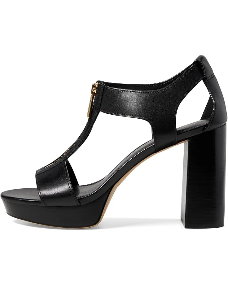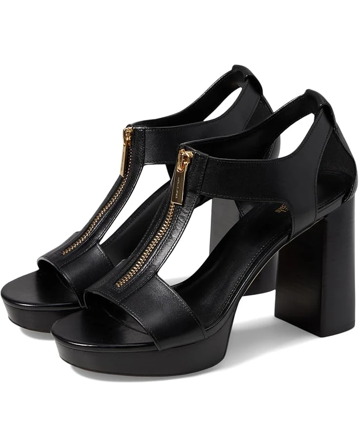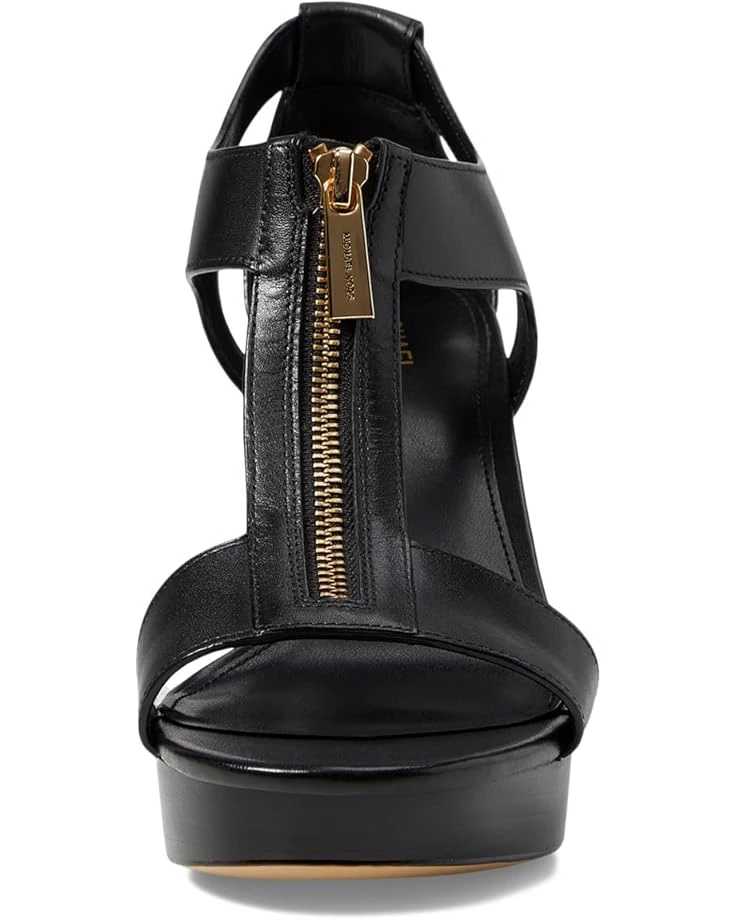 - Slay a stylish look by wearing the MICHAEL Michael Kors® Berkley Mid Sandal. The slip-on style sandals have Block platform sandals on stacked heels with iconic exposed zip-front upper and Michael Kors® zipper pull. The sandals have a leather upper, with faux leather lining, and synthetic insole for utmost comfort. The cushioned heels have branded hardware that elevates the look, making them perfect for prolonged wear.