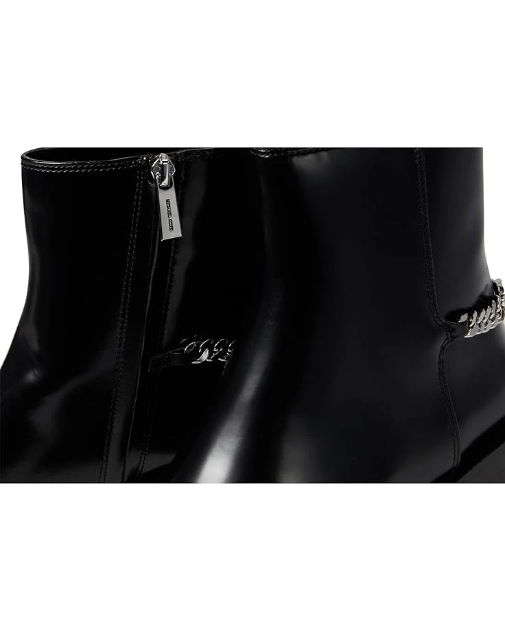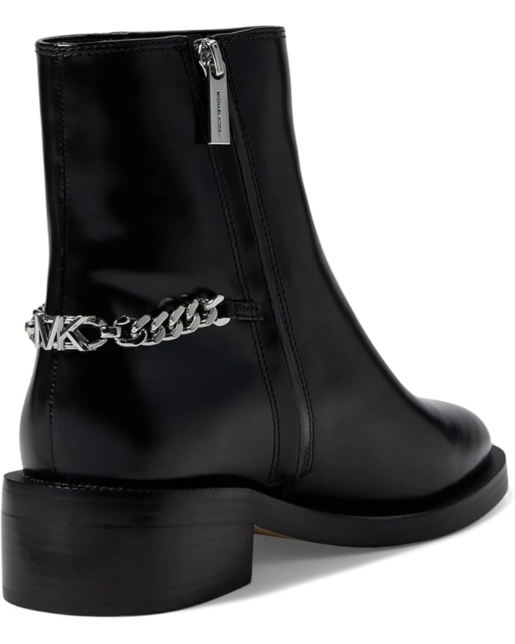 - The MICHAEL Michael Kors® Carlisle Flat Booties are contemporary flat booties that come with a zippered side closure for a refined and modern take on heritage styling. These ankle boots are elevated with a metal Empire ID chain on the heels. The leather upper, polyester lining, and synthetic insole offer added comfort and durability. Featuring stacked chunky block heels, these leather boots are perfect to make your style statement.