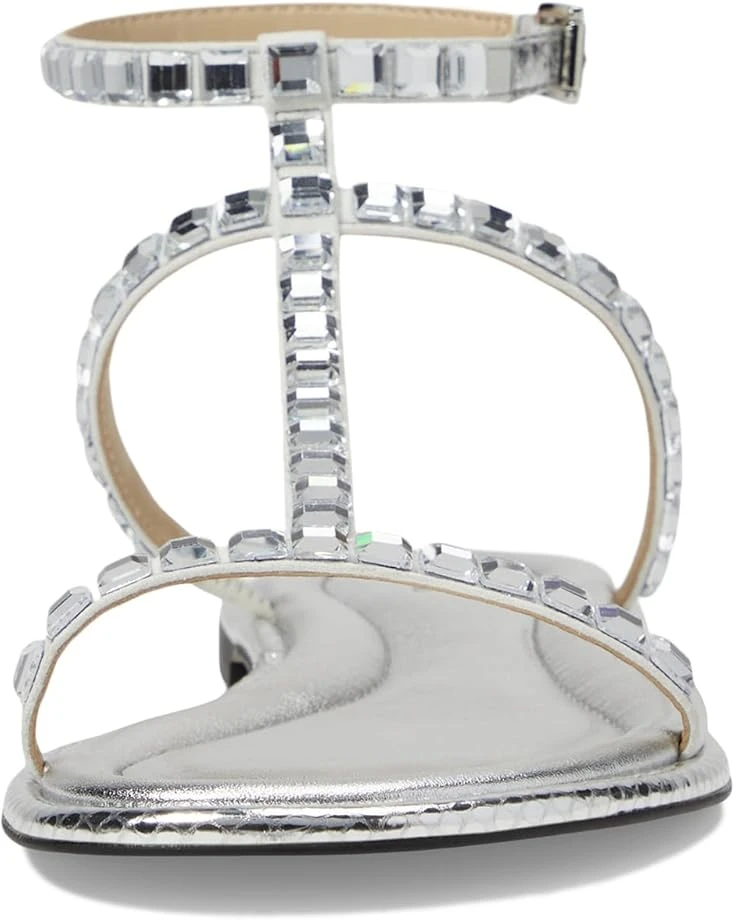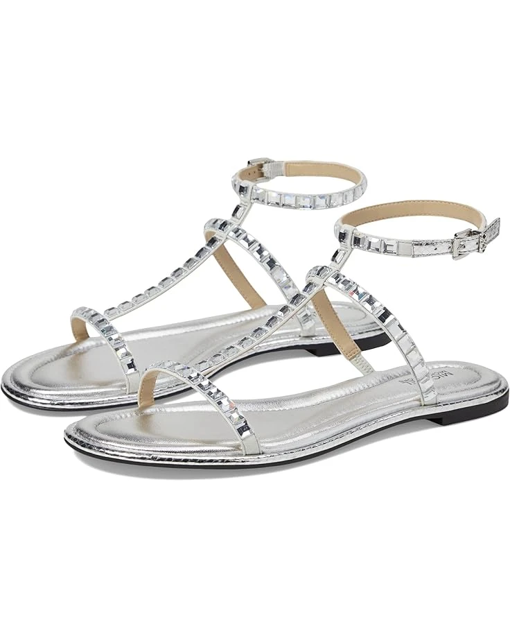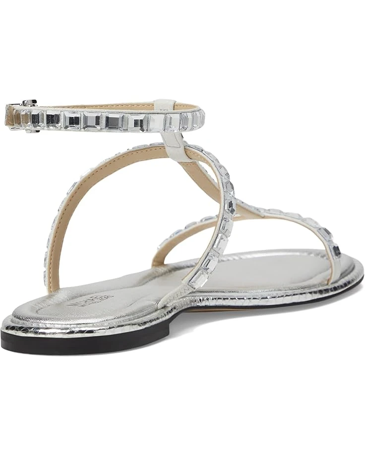 - Bring a fashionable update to your conventional street style look wearing the MICHAEL Michael Kors® Celia Flat Sandals. This open round toe footwear features textile upper construction with shiny glass crystal embellishments and ankle buckled strap closure.