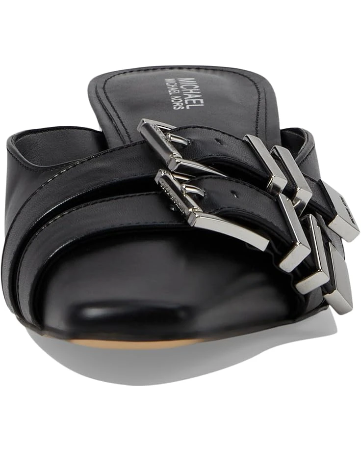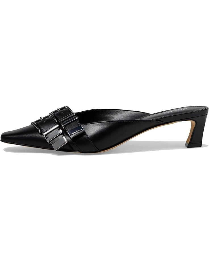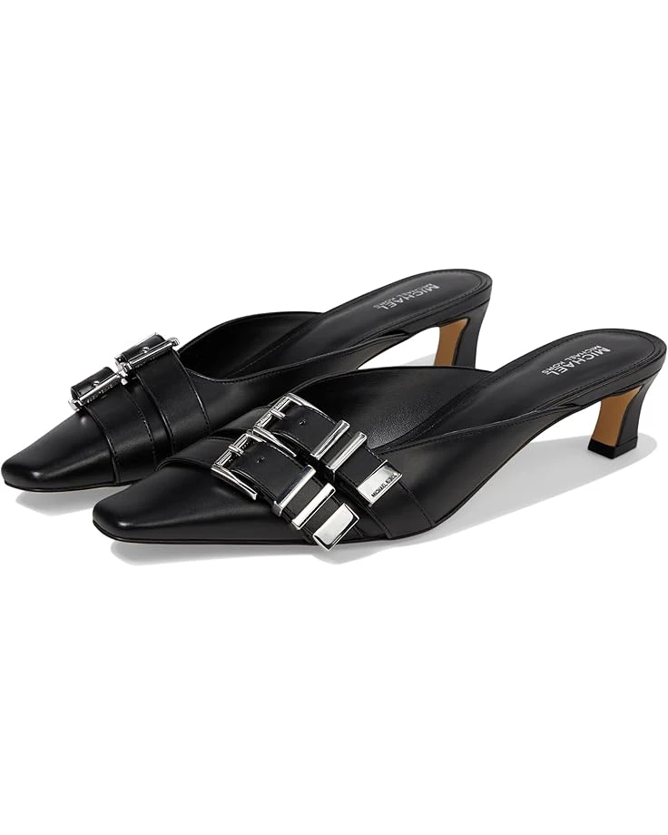 - The MICHAEL Michael Kors® Darrington Kitten Mule features an on-trend squared point toe on fashion kitten heel with multi buckle ornament on the vamp. With an easy slip-on style, the low-top footwear has leather upper construction and cushioned ethylene vinyl acetate insole for cushioning comfort.