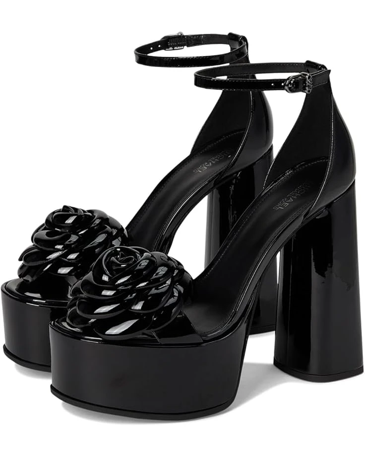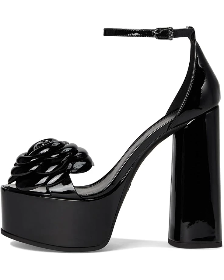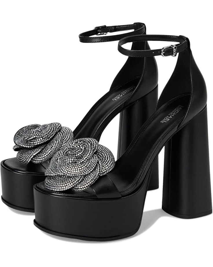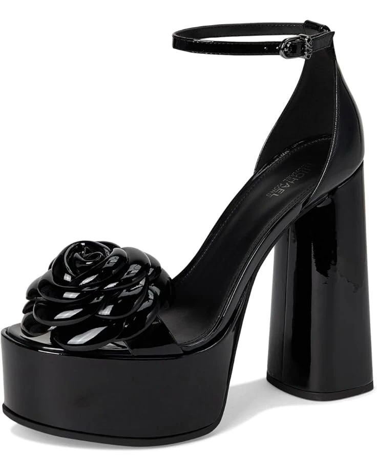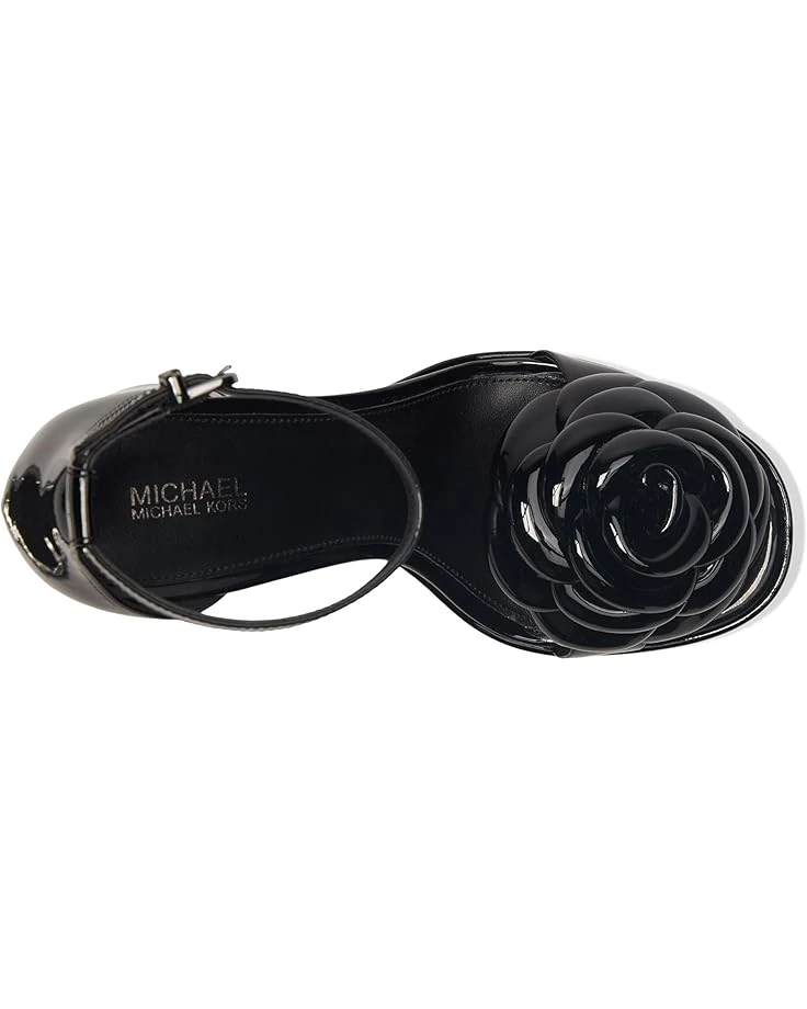 - The MICHAEL Michael Kors® Elodie Platform Sandal highlights craftsmanship and artistry in the most elegant and feminine way. Each pair boasts a hand-made 3-dimensional flower, crafted through a meticulous process. From precision cutting the petals to individually heat molding for the perfect petal shape. Assembled with care, the petals converge to create a stunning flower ornament perfectly secured atop a simple yet refined platform sandal. featuring round toe, ankle strap, buckle closure, and block heel.