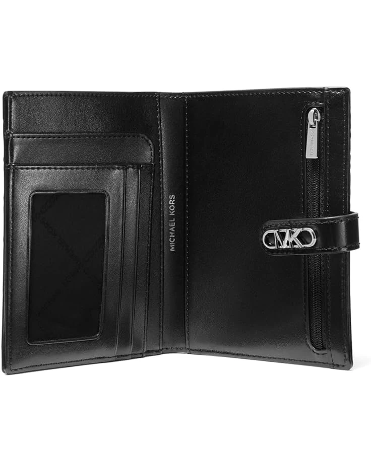 - Crafted from soft metallic croco embossed leather, the MICHAEL Michael Kors® Empire Medium Tab Passport Wallet holds passport and credit cards. It has a snap-button closure and a zippered pocket.