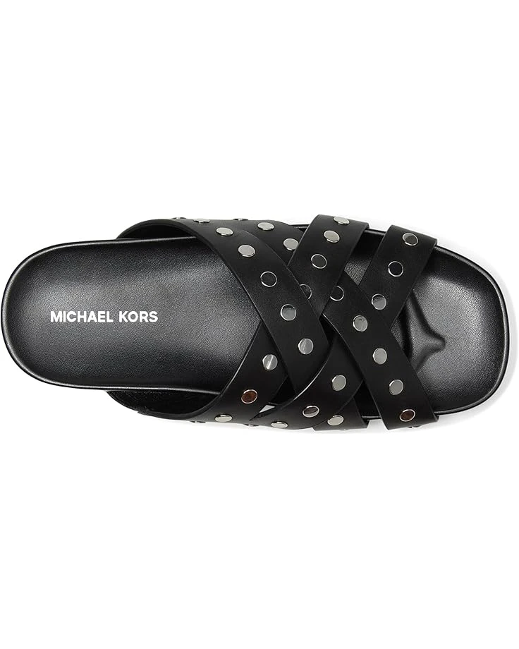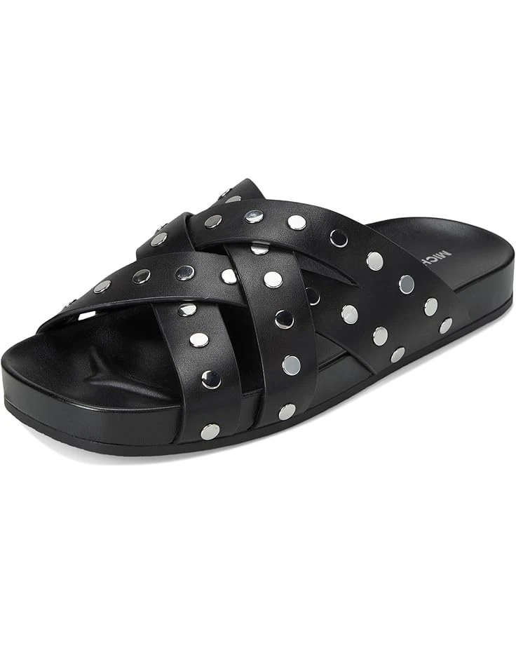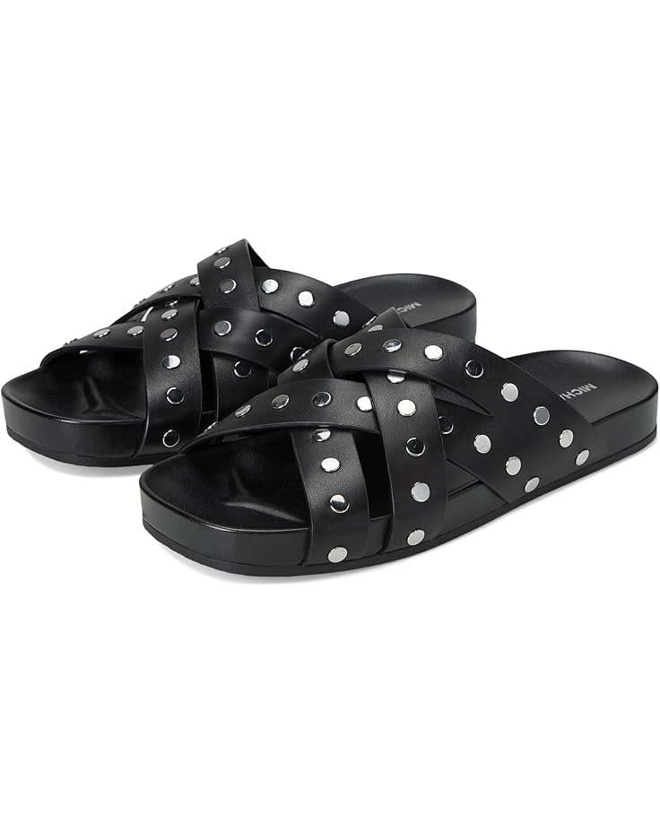 - Showcase your vintage style wearing the MICHAEL Michael Kors® Irene Flat Sandal. Crafted from leather upper, polyurethane lining, and faux leather insole, this pair of sandals features open round toe, crisscross strap style, handwoven technique, and nail head detailing celebrating craftsmanship and a heritage aesthetic. Molded inset footbed and elasticized gore on instep.