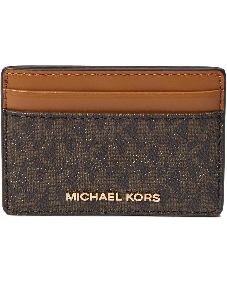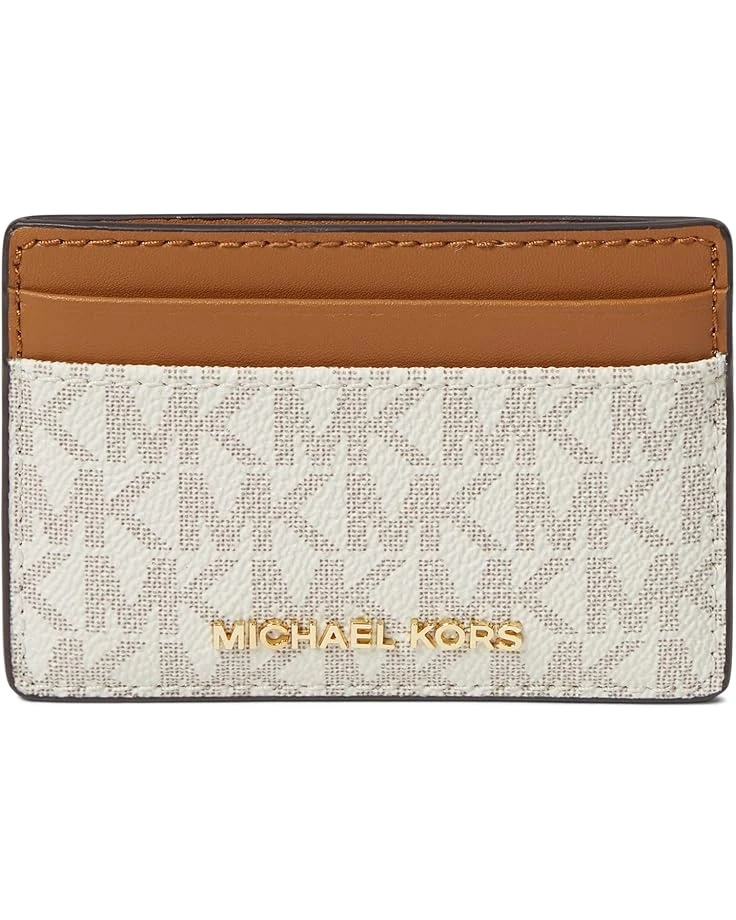 - Keep your cards safe and secure during daily commutes or travels in the MICHAEL Michael Kors® Jet Set Card Holder, crafted with durable polyvinyl chloride material. The card holder feature comes with four credit card pockets and a solid pattern with Michael Kors® logo detail on the front.