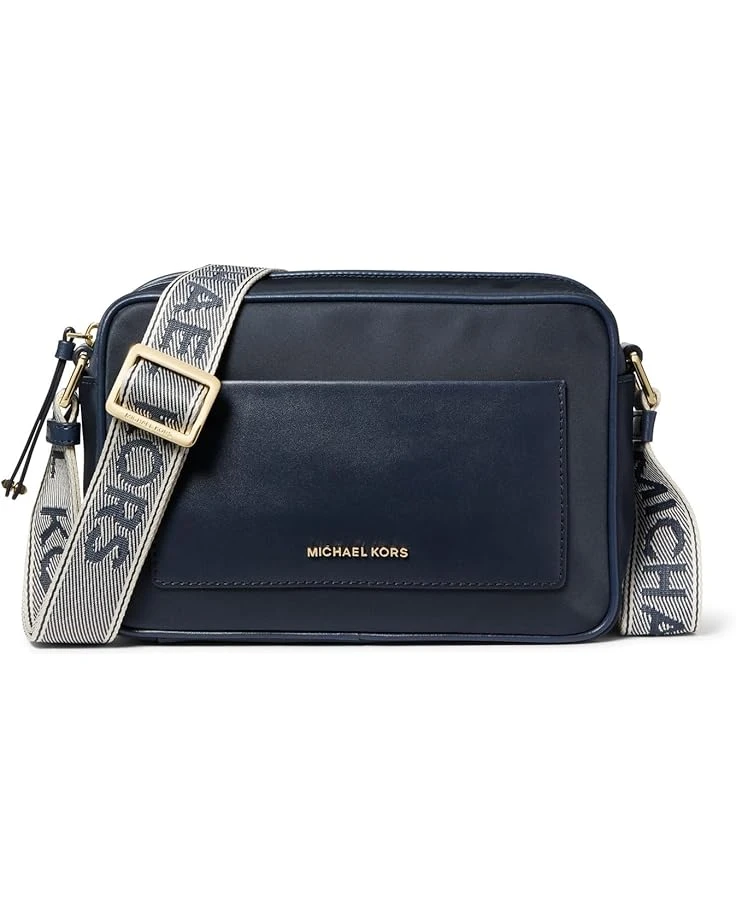 - Exhibit your fashion-forward look carrying the MICHAEL Michael Kors® Jet Set Large East/West Crossbody with Web Strap. This polished handbag features zippered closure, nylon construction, and two exterior slip pockets on the front and back.