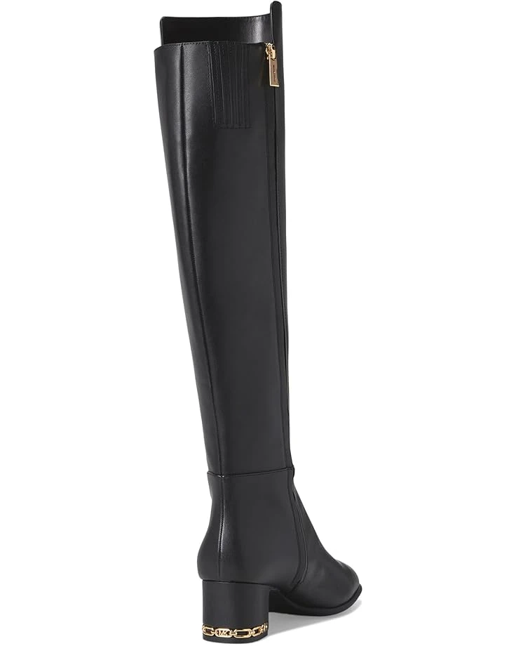 - The MICHAEL Michael Kors® June Flex Boots combine exceptional style and extra padded sock construction for a comfortable feel. The mid heel boot is designed with comfort in mind from flex costruction to extra cushioned synthetic insoles detailed with elevated empire chain hardware on the heel, adding a sophisticated touch. The tall knee-high boots feature a leather upper, polyester lining, a block heel detail, and a zip closure.