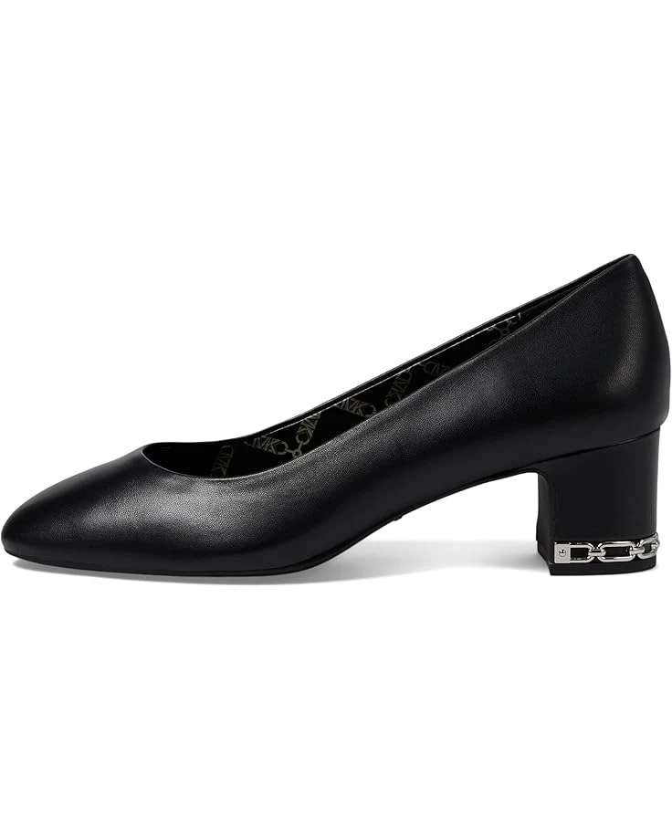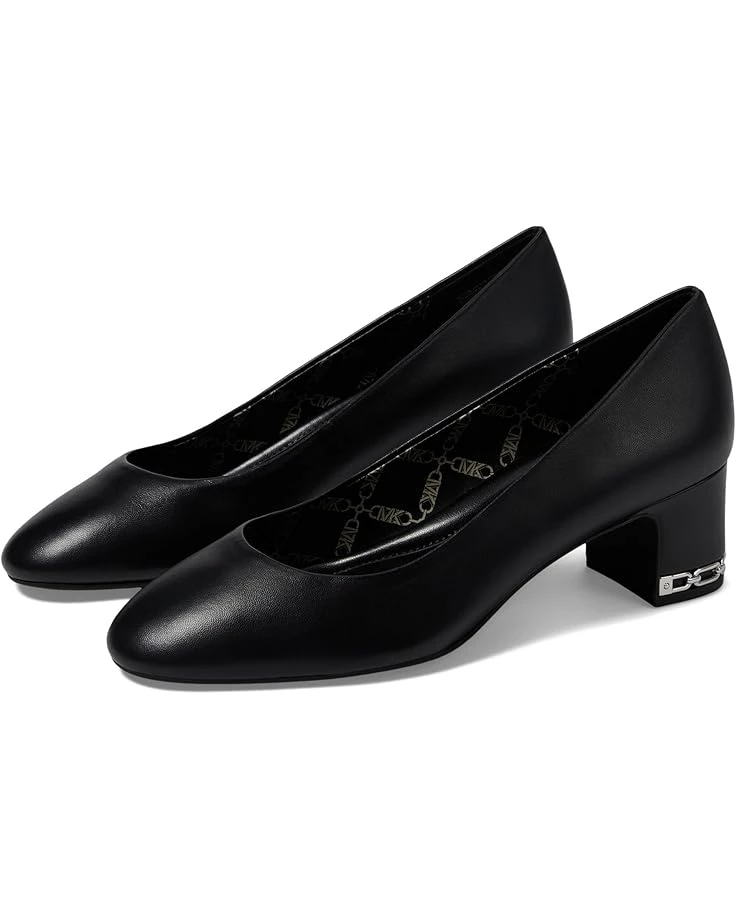 - From their flex construction to extra cushioned faux leather insole, the MICHAEL Michael Kors® June Flex Mid Pumps are perfect to pair with your formal looks and work outfits. The leather upper and faux leather lining of these shoes make them comfortable and durable for everyday wear. Detailed with elevated empire chain hardware on the heels, these leather pumps add a sophisticated touch to your outfits and styles.