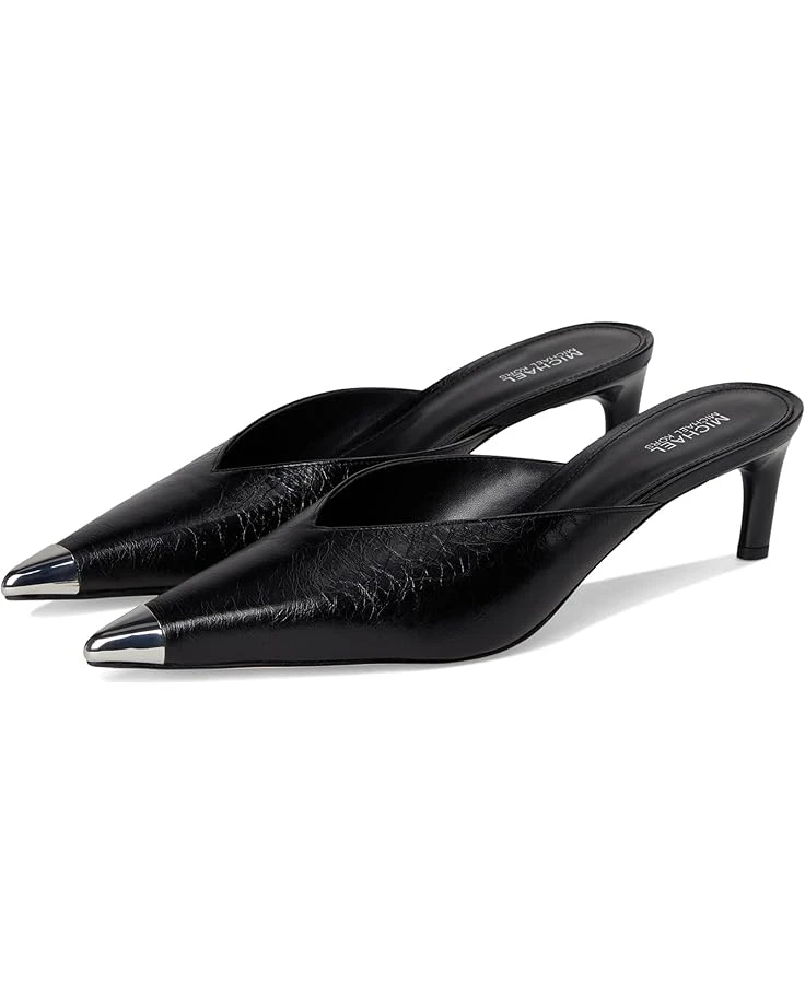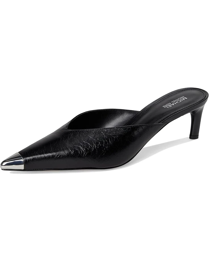 - The MICHAEL Michael Kors® Kasia Mule Pumps with metal toe cap detail. From day to night, Kasia offers a seamless transition for every occasion, embodying versatility and style. These stylish mule pumps feature cotton upper, faux leather lining and insole, and eye-catching nailhead detailing. The kitten heels add a touch of sophistication, making them perfect for both day and night looks.