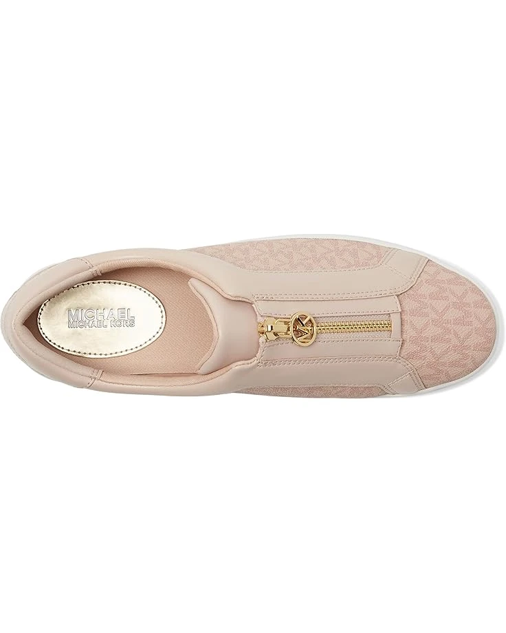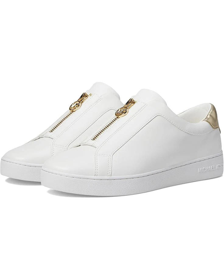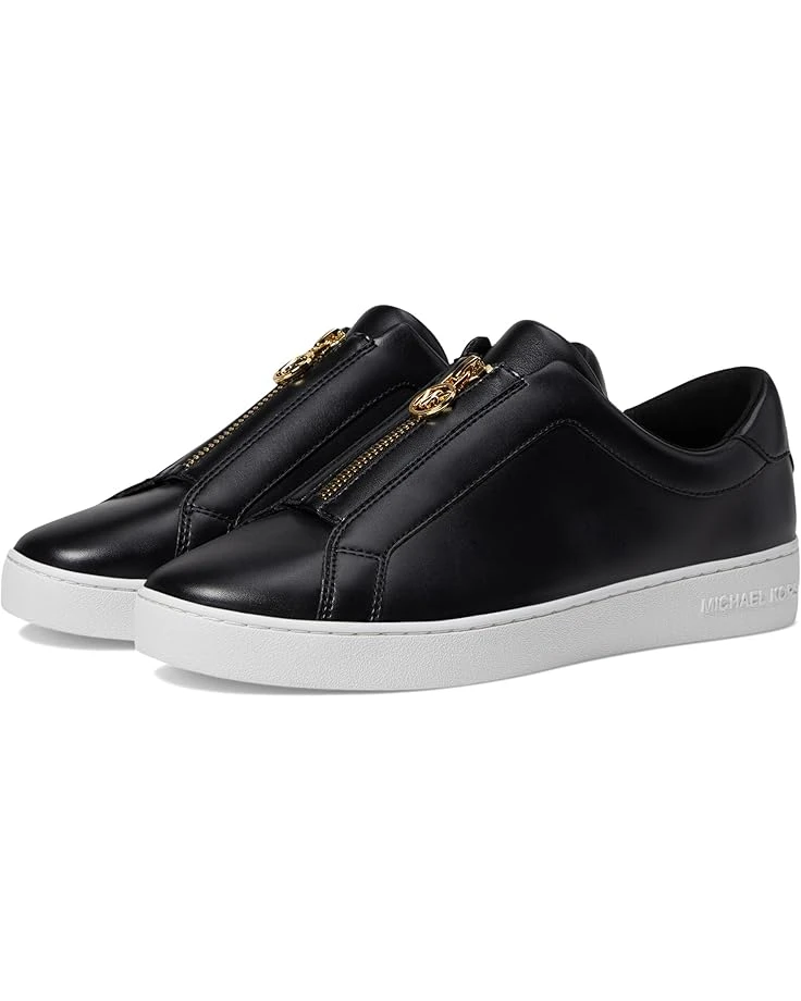 - Walk ahead of others in a crowd by wearing MICHAEL Michael Kors® Keaton Zip Slip-On sneakers. The sneakers are made of leather upper, textile lining, and textile insole. It features round toe and front zipper closure; making it perfect in fit.