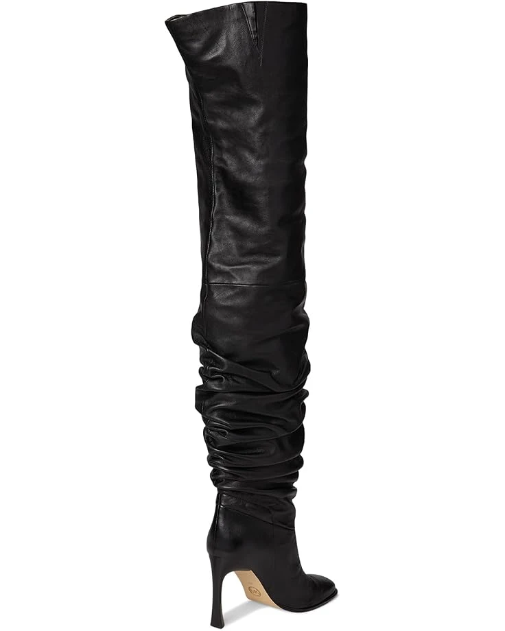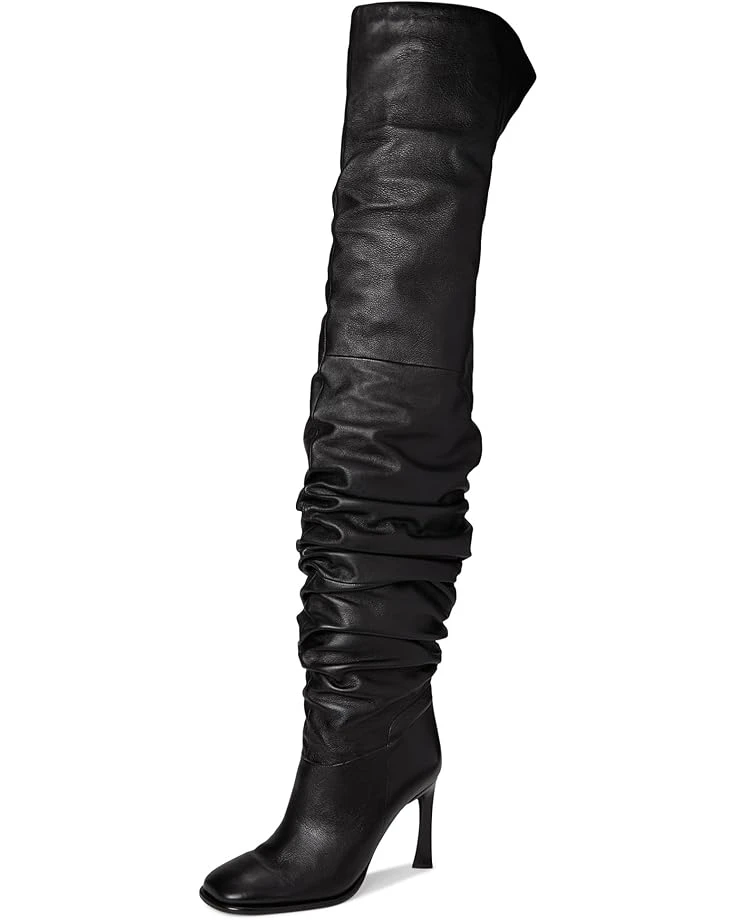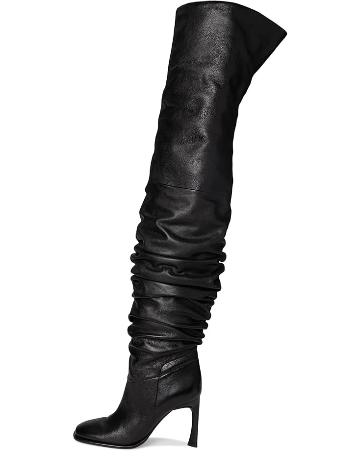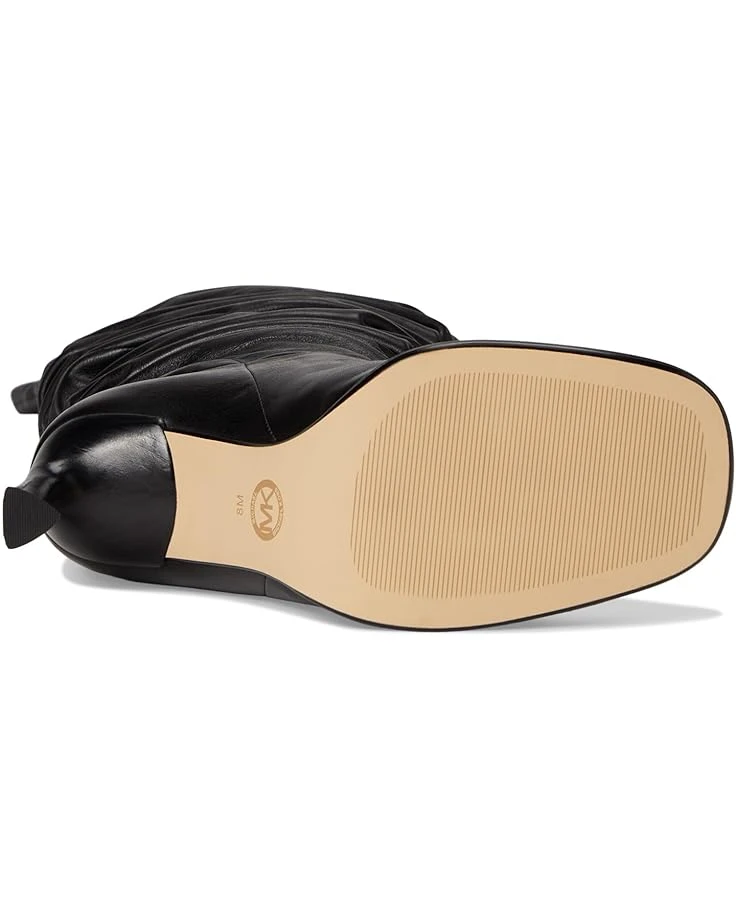 - Make yourself known styling these MICHAEL Michael Kors® Kelsea Slouchy Boots. These thigh-high, pull-on boots are designed with a luxurious leather upper and a smooth polyester satin lining that ensures a comfortable slouchy effect. The striking square toe and extended welt add a bold touch, while the sleek stiletto heel elevates your look with every step. Perfect for making a statement, these knee-high boots seamlessly blend fashion and function with a rubber outsole and synthetic insole, making them your go-to for a polished, runway-ready style this season.