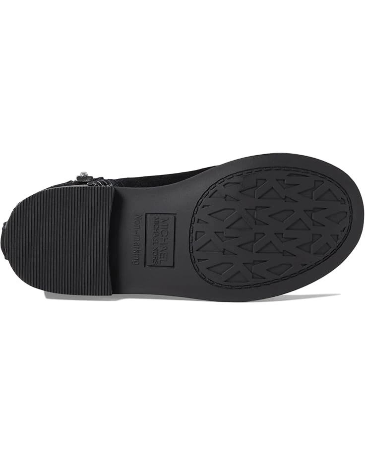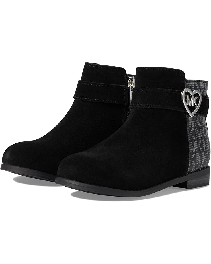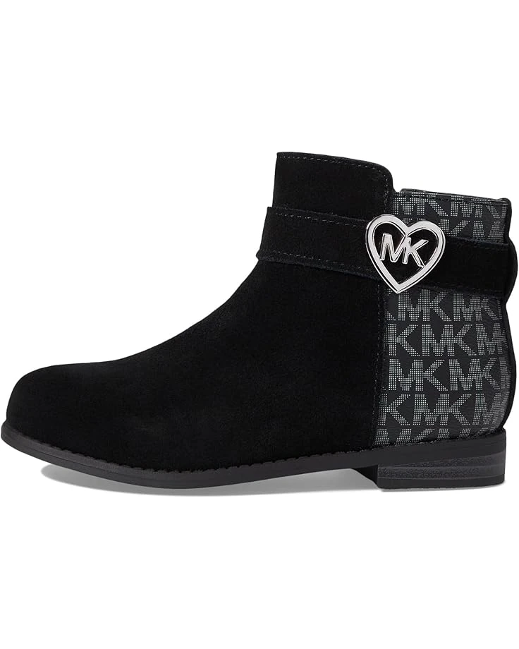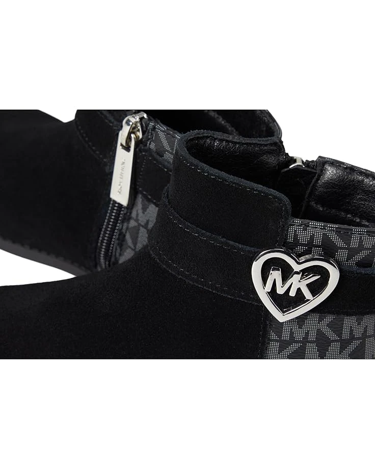 - Pamper your feet with the upgraded comfort of style by wearing MICHAEL Michael Kors® Kids Emma Heart. The bootie features a round toe and pull-on style. Dotted with a decorated heart in silver accent it adds to the whole lot of style. The bootie is made of suede and polyurethane upper.