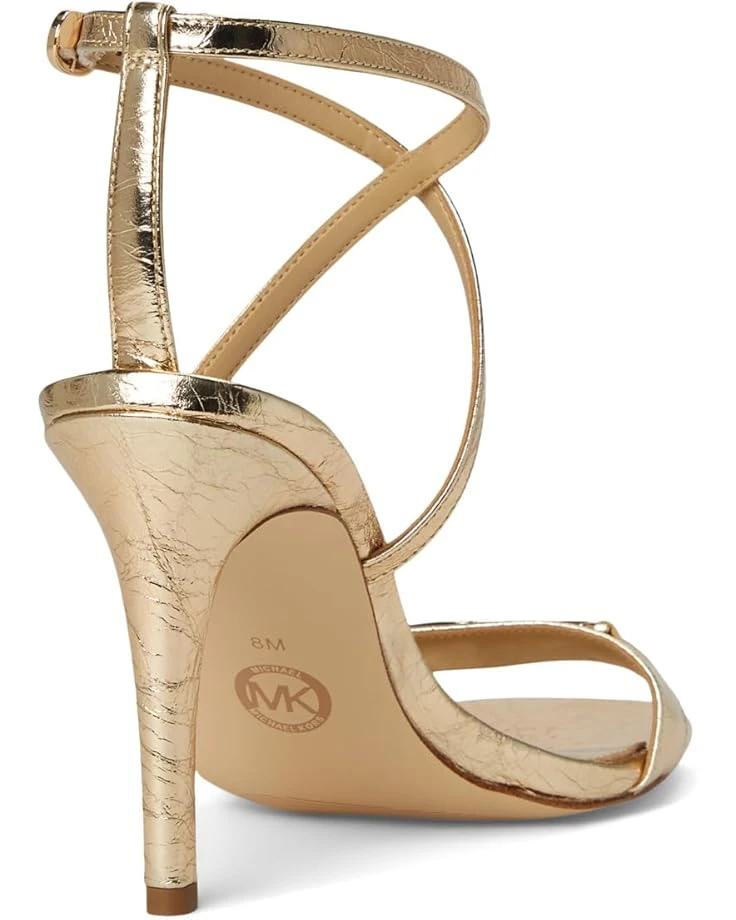 - The MICHAEL Michael Kors® Lena Heeled Sandal elevates your style game with its luxe leather upper, chic cross-strap design, and a delicate horsebit hardware detail on the vamp that exudes timeless elegance. The stiletto heel and open toe silhouette create a refined, feminine profile, perfect for any dressy occasion. A faux leather lining and insole ensure comfort, while the rubber outsole provides reliable grip. With an adjustable buckle ankle strap for a secure fit, this sandal offers the perfect blend of polished sophistication and modern charm.