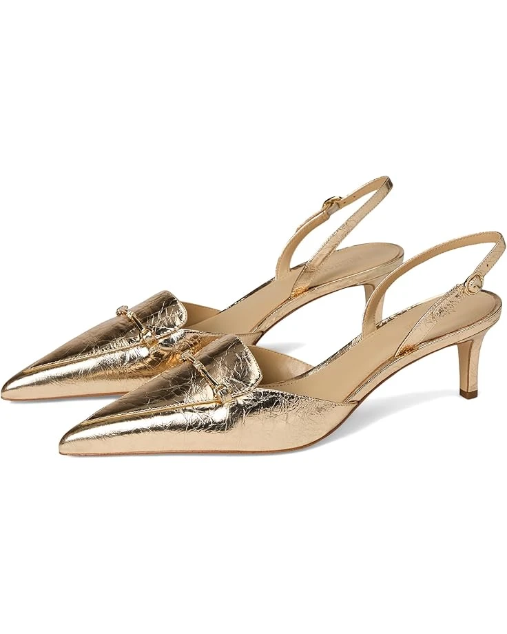 - The MICHAEL Michael Kors® Lena Sling Pumps feature a modern and refined approach to heritage hardware design featuring a delicate horsebit hardware piece that offers a dressier and polished sensibility. The pumps are designed with shiny leather upper, faux leather lining, and insole.