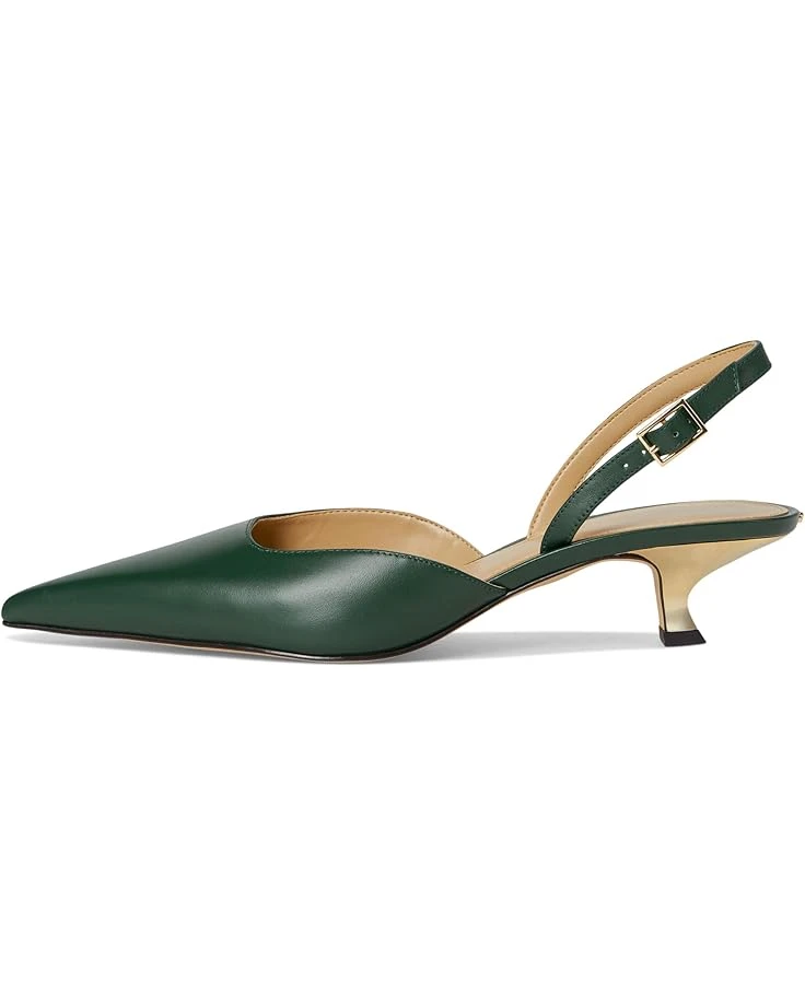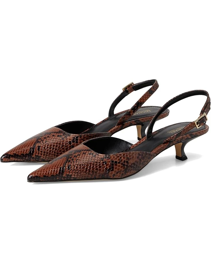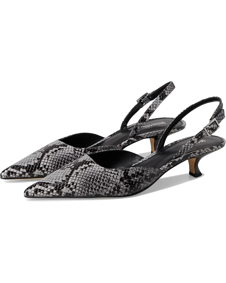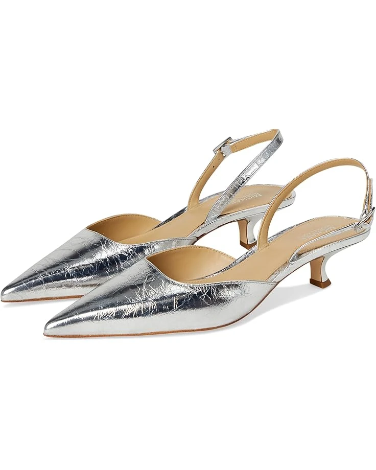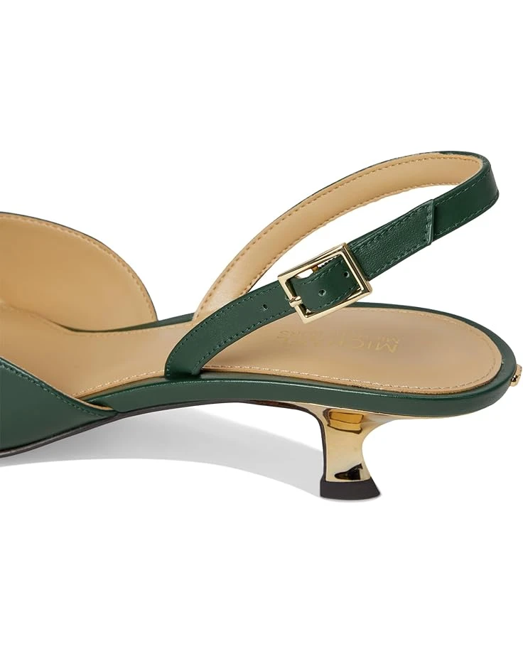 - The MICHAEL Michael Kors® Luna Kitten Sling Pumps are on-trend slingback squared pointed toe pumps on kitten heels and are a statement piece with a fashionable kicked-in heel design. Crafted with leather upper and faux leather lining, these heels are both stylish and sophisticated.