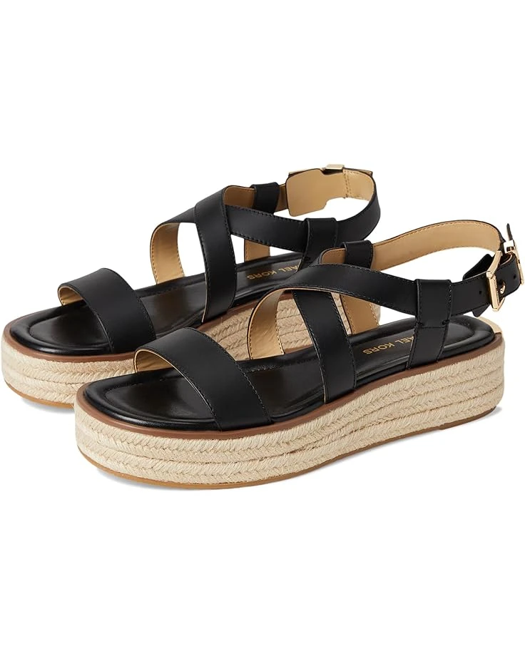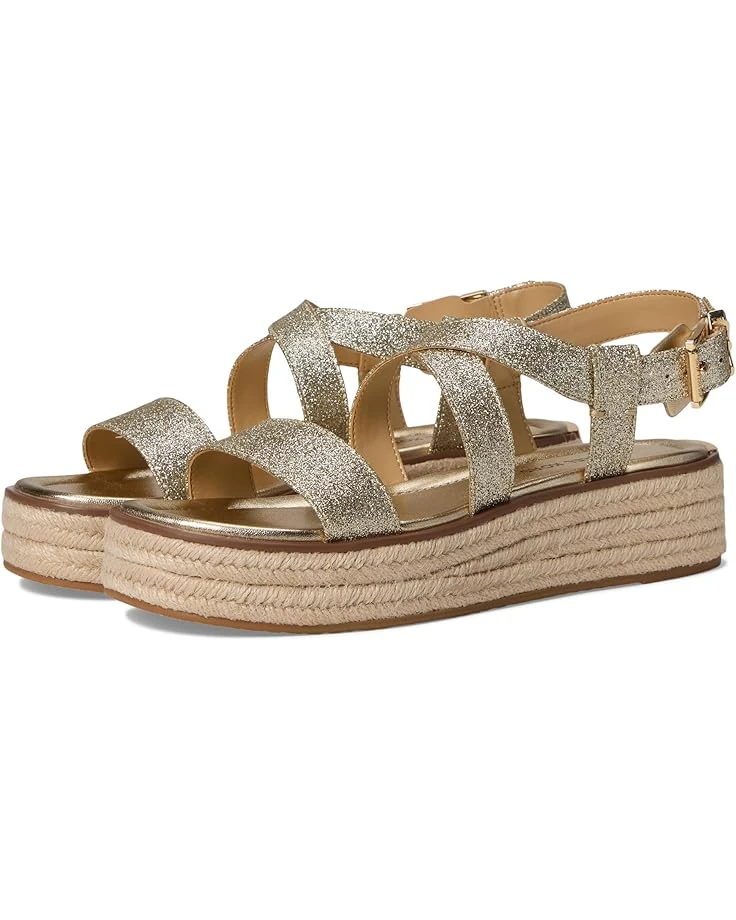 - Polished with the iconic “MK” initial buckle keeper set on a woven double jute platform construction for a bohemian twist, the MICHAEL Michael Kors® Lynn Espadrille Sandal is a seasonal must-have ready for everyday wear with its padded insole. In addition, the ankle strap and chunky sole combine to create the illusion of longer legs.