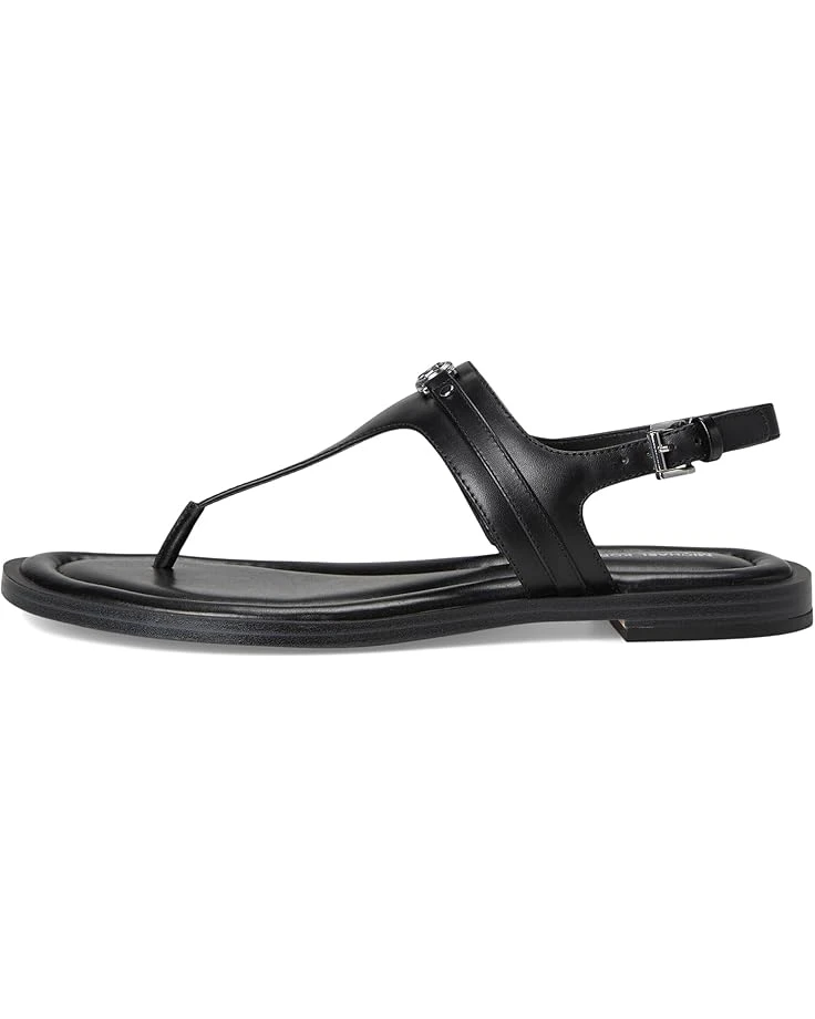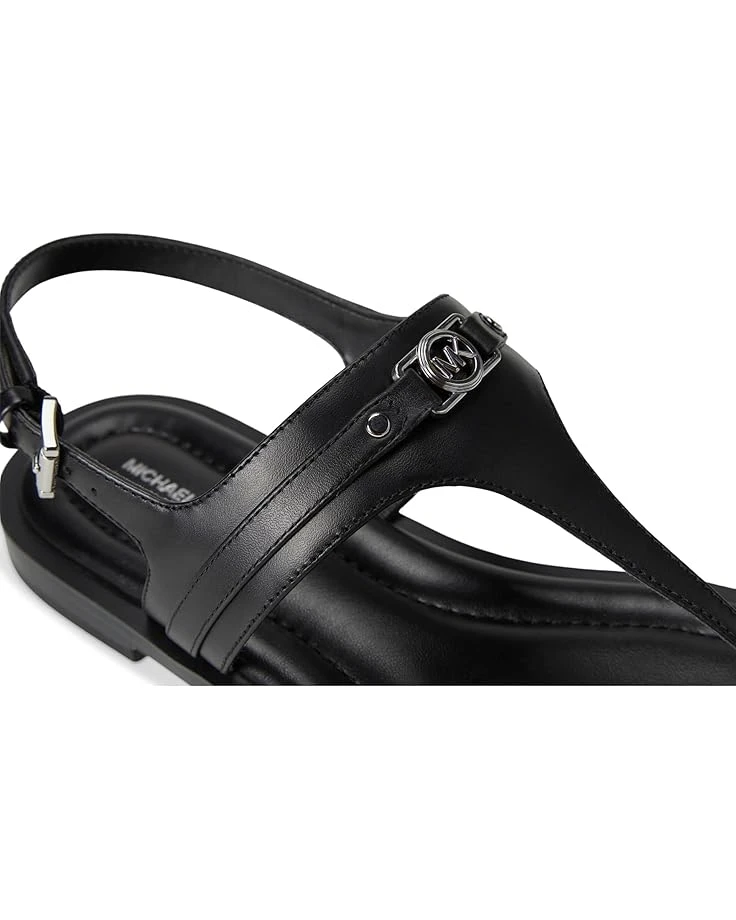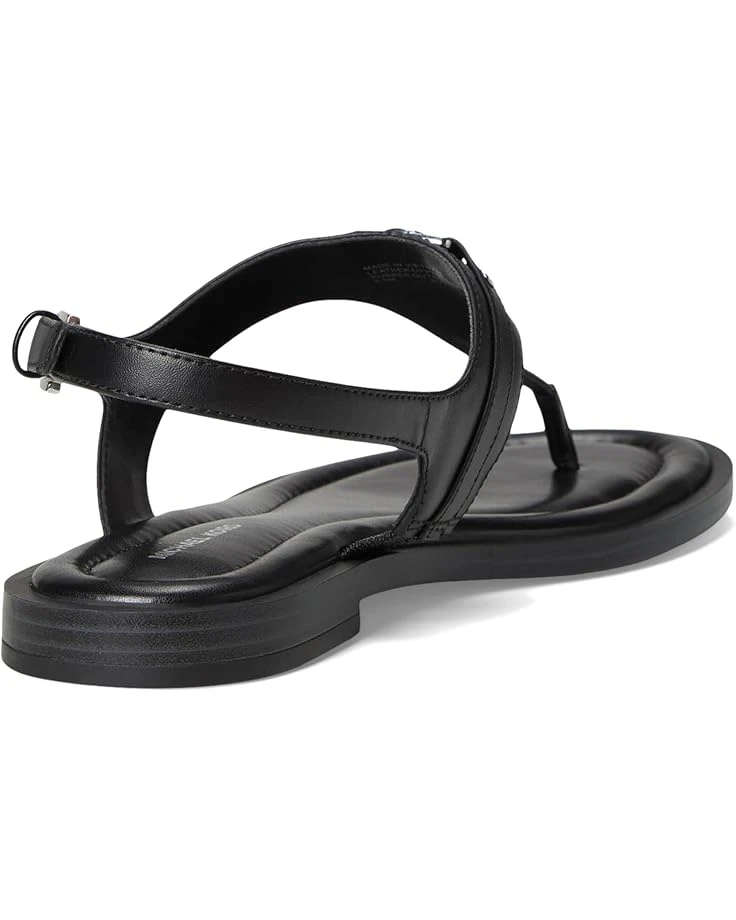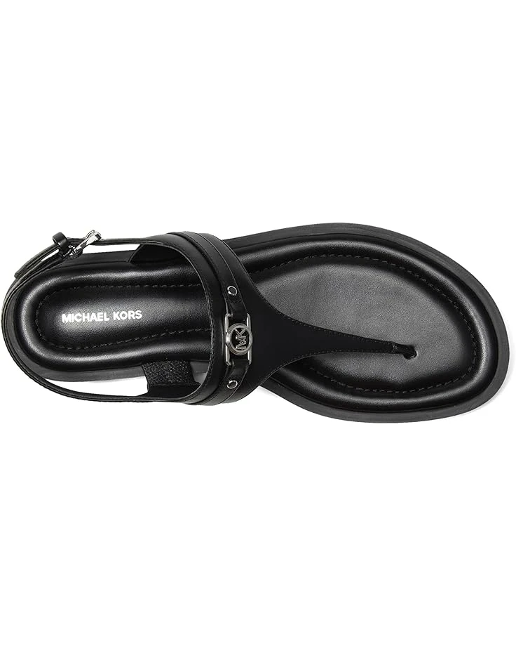 - The MICHAEL Michael Kors® Mandy Thong Sandal is a flat casual thong sandal that is a seasonal must-have as it is effortless and perfect for any wardrobe, combining simplicity with signature MK aesthetic featuring MK facet charm on upper with padded insole. Crafted from PVC upper, polyurethane lining, and faux leather insole, this pair of sandal features open round toe, extra padded sock, adjustable ankle strap, and buckled closure.