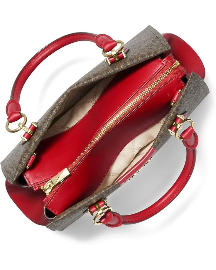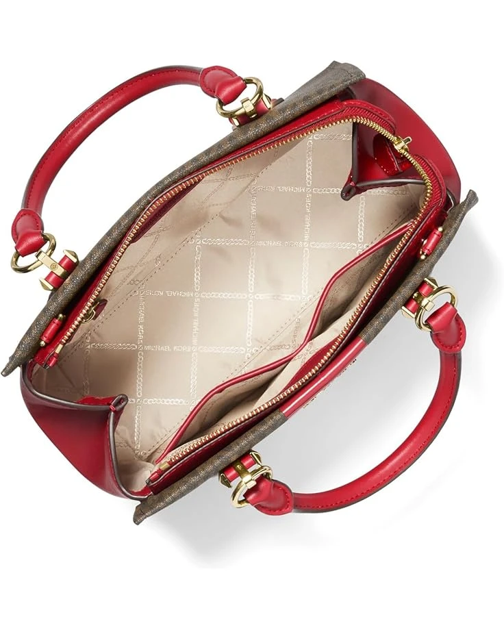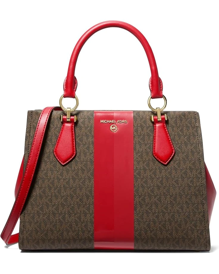 - Step into the world of refined elegance carrying the MICHAEL Michael Kors® Marilyn Medium Satchel. Its exterior features back and front slip pockets, providing convenient storage for your essentials. The well-designed interior includes a back zip pocket and two front slip pockets, ensuring efficient organization of your belongings. The zip fastening offers security, while the brand’s initials hardware on the front adds a touch of sophistication and elegance.