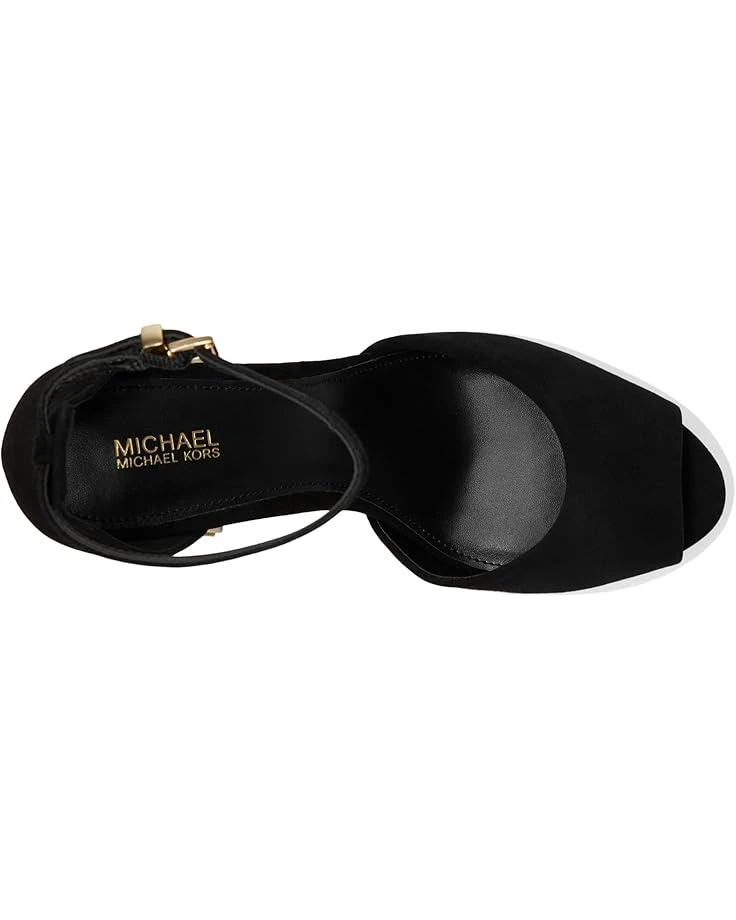 - Exude a chic vibe as you style outfits with the MICHAEL Michael Kors® Maxine Platform Heels. The platform peep toe features a modern design with timeless sophistication and showcases a unique and innovative block heel design inspired by an earring crafted into a cage-like structure that wraps around the heel. The clean and timeless leather uppers paired with this heel with intricate openings create dimension and visual interest, ensuring the heel takes center stage. It features a faux leather lining, ethylene vinyl acetate insole, and an ankle strap & buckle closure.