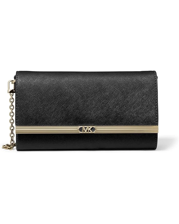 - The MICHAEL Michael Kors® Mona Large East/West Clutch is a sleek and versatile accessory that seamlessly combines style and functionality. It features a convenient back slip pocket on the exterior. The interior boasts a front slip pocket, ensuring your essentials are organized and easily accessible. The snap fastening provides secure closure, while the detachable chain strap offers the option for hands-free wear.