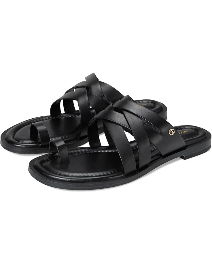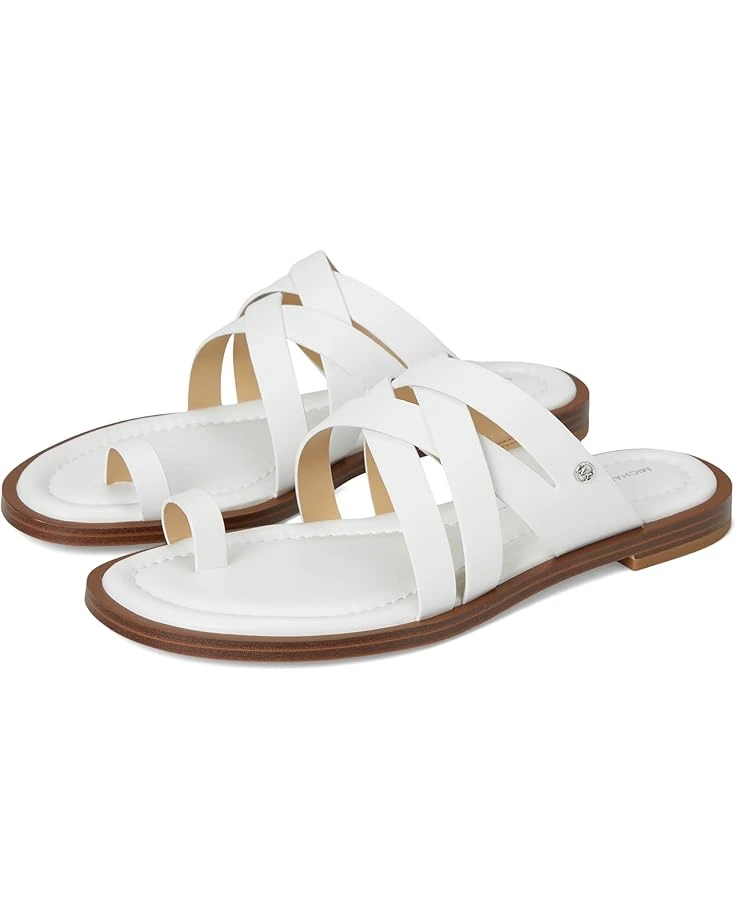 - The MICHAEL Michael Kors® Nora Thong Sandals are flat-toe thong sandals centered on craftsmanship and heritage aesthetics elevated by a beautiful handwoven technique. Their cushioned footbed and flex rubber outsole offer added comfort. The leather upper features a strappy design and a slip-on style. These leather sandals are made of a faux leather insole, extra padded footbed, and polyurethane lining, making them both comfortable and durable.