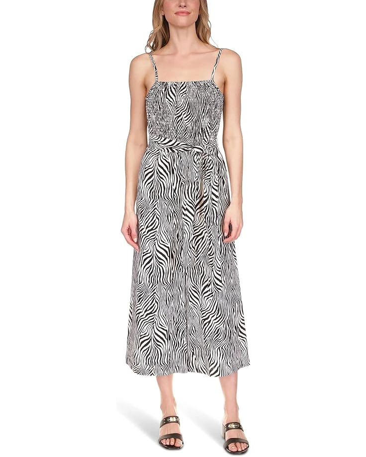 - Look like a fashion diva, wearing the easy-breezy and stylish MICHAEL Michael Kors® Petite Zebra Smock Jumpsuit.