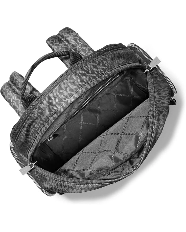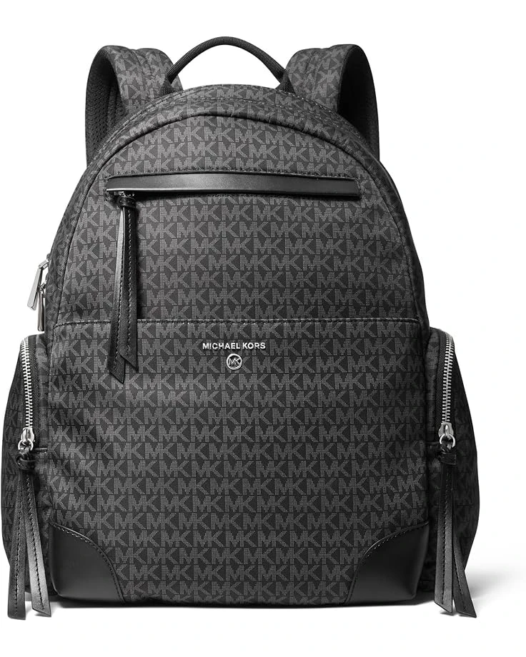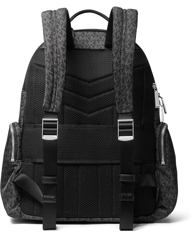 - Travel with style by carrying the MICHAEL Michael Kors(R0 Prescott Large Backpack. From work to vacation trips, this stylish backpack offers you enough storage space for all your stuff. Featuring brand logo print all over, this carry-on bag will grab everyone’s attention wherever you go. The contrast leather trim and updated logo charm offer added style while the mesh back keeps you cool and comfortable. With its adjustable shoulder straps, this nylon bag is comfortable to carry around.