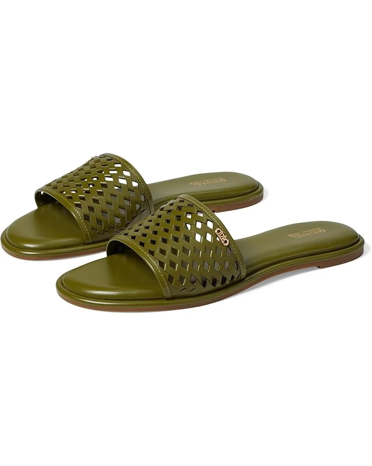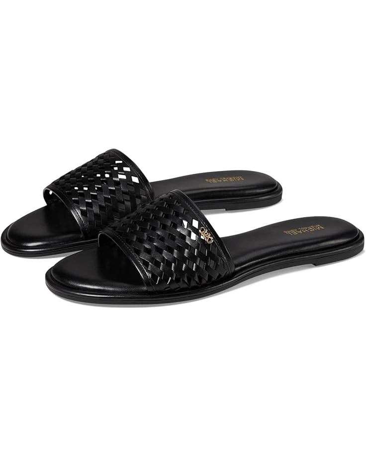- Strut in your distinctive yet comfy style wearing the MICHAEL Michael Kors® Saylor Slide Flat Sandals. This slip-on footwear features leather upper construction with synthetic lining and insole.