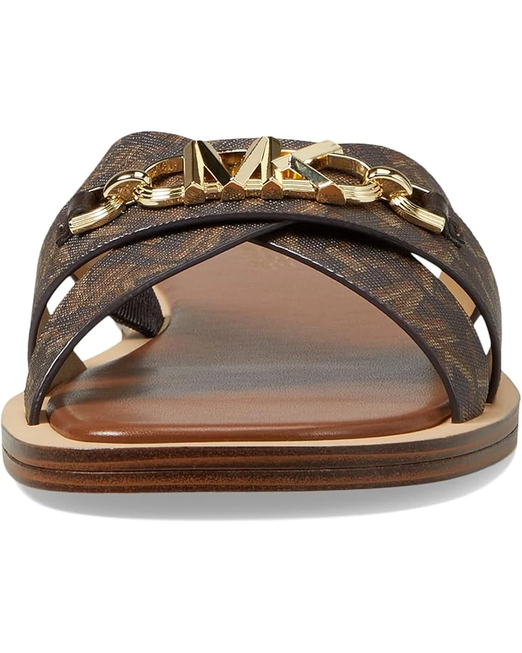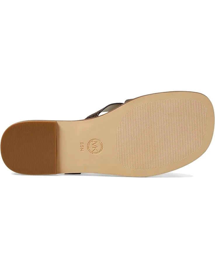 - MICHAEL Michael Kors® Tiffanie Flat Slides command attention with their logo-embossed strappy PVC upper accented with an iconic metal logo, a faux leather lining, and a padded synthetic insole. Coming in a slip-on style, these shoes are perfect for use while you are on the go.