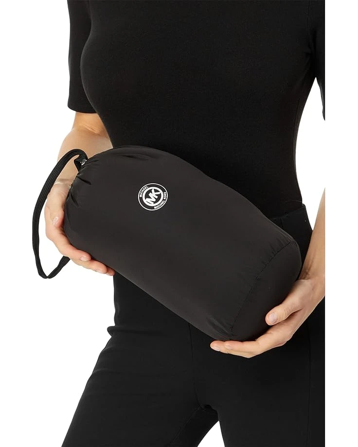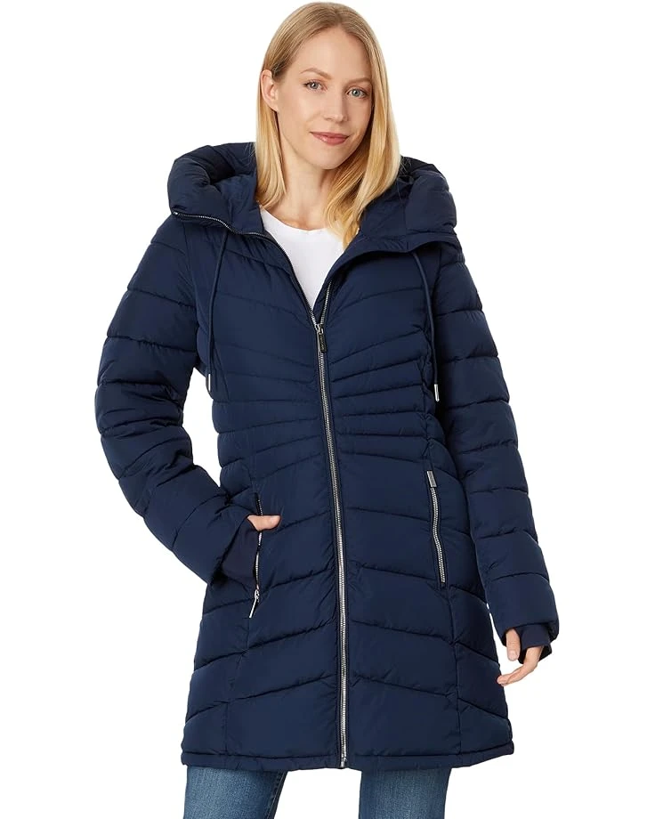 - Embrace the fluff, conquer the cold wearing the MICHAEL Michael Kors® Zip Front Light Weight Puffer M426607BZ. This Knee length, lightweight puffer jacket features attached drawstring hood, long sleeves, storm cuff, zippered front closure, and flattering quilt seaming at waist.